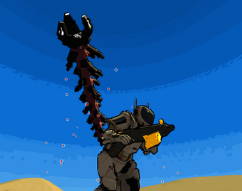 I think the concept is amazing! I had a fun time running around the beautiful atmosphere. The movement of the main character was very fluid. I could just sit back and watch the worms go in and out of the ground shooting their particles all day. It was kind of relaxing.